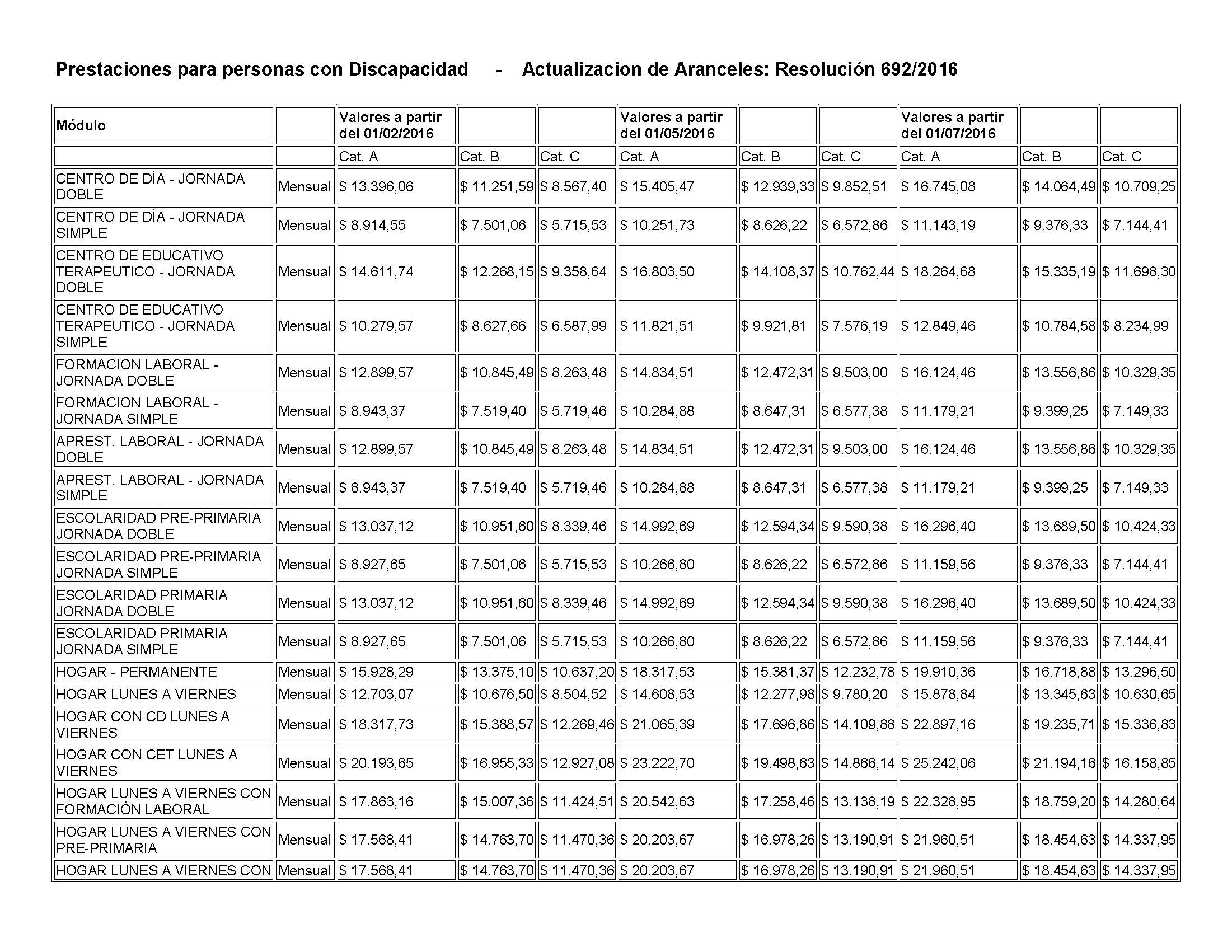 Agradezco me informen si hubo modificacion de la resolucion 692/2016 para el año 2016 y si hay actualiación para 2017, Gracias
