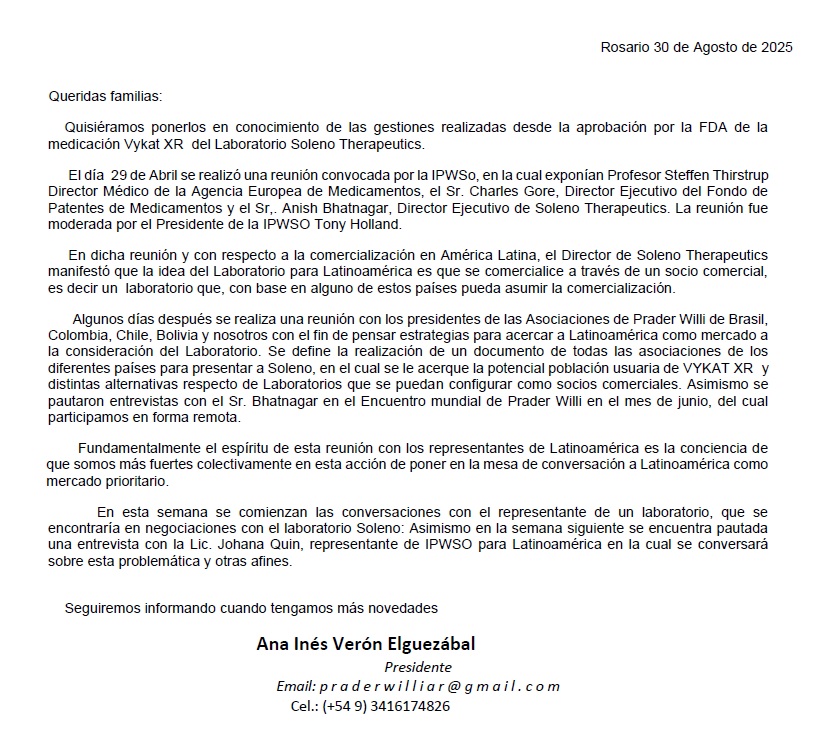 Gestiones sobre comercialización de la medicación Vykat XR en América Latina por Admin | Sep 12, 2025 | Novedades |